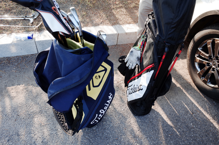 캐디백은 소지 자체가 불가능하고 피칭 웨지 이하의 웨지와 퍼터, 공만 챙겨서 이동하면 된다.