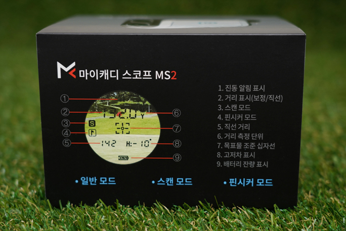 마이캐디 MS2 스코프 제품은 레이저 측정 방식으로 최대 900m 측정이 가능한 스펙을 가지고 있으나, 광학 손떨림 방지 기능이 제공되지는 않기에 실제는 200m 이내의 사용에 적합하다.