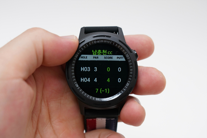 하단에는 스코어가 표시되며 터치하면 스코어카드 기록 화면으로 이동된다. 홀별로 파 정보가 표시되어 스코어를 직접 입력할 수 있다.