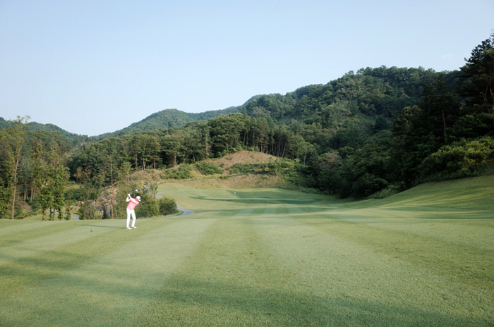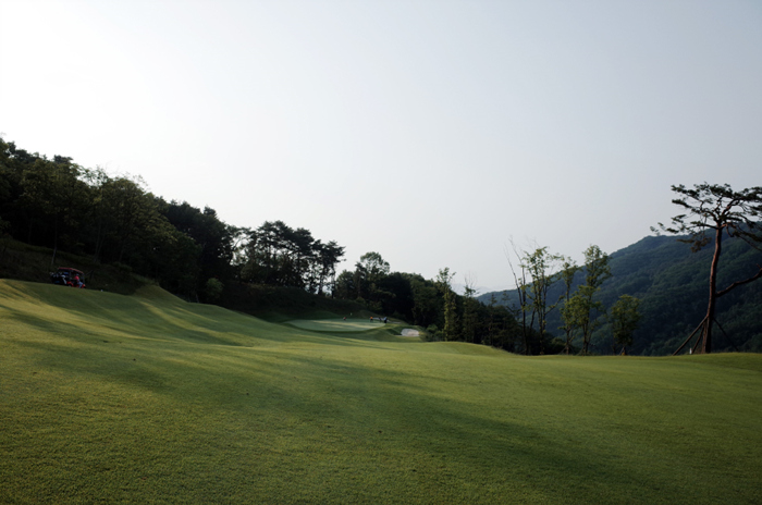 경기도 가평은 강원도에 가깝게 위치하고 있어 산중턱에 조성된 골프장의 고저차와 언듈레이션이 상당히 있다. 주변의 풍광 역시 평지에 구성되어있는 곳에 비해 시작부터 멋진 모습을 확인할 수 있다.