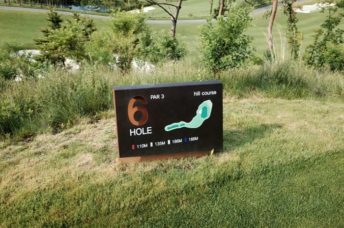 힐코스 6번홀은 150m 거리의 파3. 좌측으로 굽어있고 벙커가 있어 쉽지 않다.