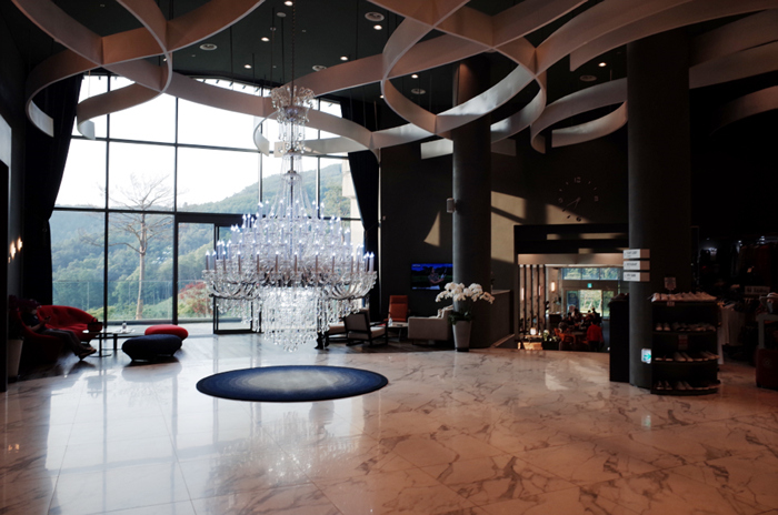 클럽하우스의 내부도 모던하고 깔끔한 느낌이 좋다. 유리창을 통해 전경을 바라볼 수 있는 곳에 큼직한 샹들리에가 포토존을 만들어주고 있다.