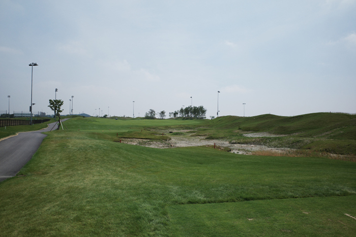 WEST 6번홀은 171m 길이의 파3로, 파3홀 중에 가장 길다. 코스 왼쪽은 대부분이 해저드인데, 아직 물이 채워져 있지 않아 휑한 느낌이 든다.