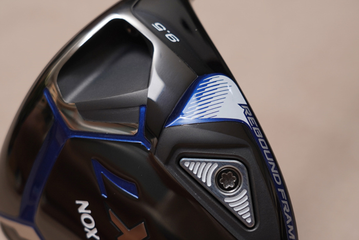 티타늄 페이스, CFRP 복합 소재의 크라운 구성이며, 페이스에는 스윗스팟의 범위를 표현한 모습과 리바운드 프레임의 문구를 확인할 수 있다.