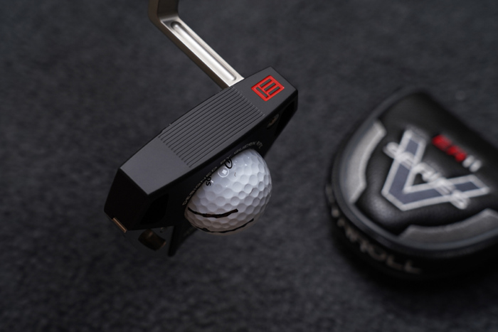 이븐롤 ER11v는 넓직한 헤드의 말렛 퍼터로, 100% MILLED 공정으로 제작되어 페이스 인서트 방식보다 고가의 구성이다. 상단에는 두꺼운 두 줄의 라인이 어드레스에 도움을 주고 있는 모습.