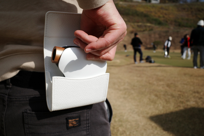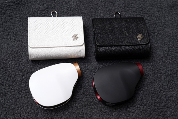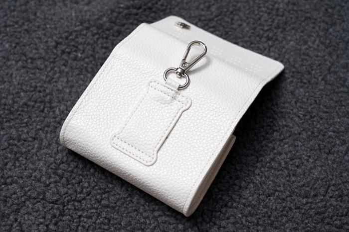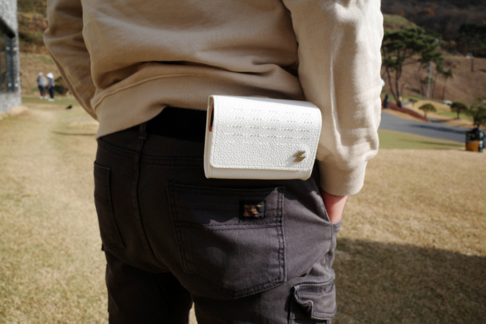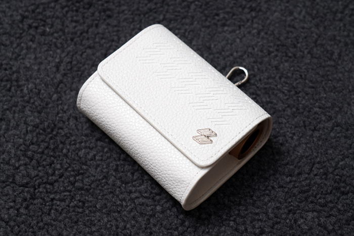 화이트 색상에 가죽 소재로 구성된 깔끔한 휴대용 케이스로, 자석이 내장되어 가장 편리하게 제품을 수납하고 꺼낼 수 있다. 후면에는 고리와 벨트 통과 홀이 있어 허리나 가방 등에 고정할 수 있다.