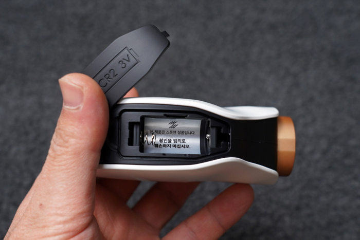 배터리는 커버 형태로 하단에 수납되며 일반적으로 돌려 장착하는 방식에 비해 다소 내구성이 염려된다. 고전적인 CR2 타입을 사용하며 최대 5,000회의 측정이 가능하다.