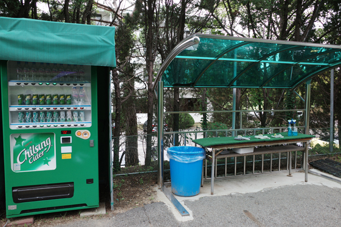 웨지와 퍼터를 넣고 이동할 수 있는 미니백을 무료로 이용할 수 있다. 주차장을 지나 계단으로 올라가면 스타트 지점이 있으며 잠시 기다리며 쉬거나 자판기를 이용할 수 있다.