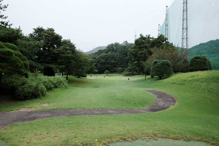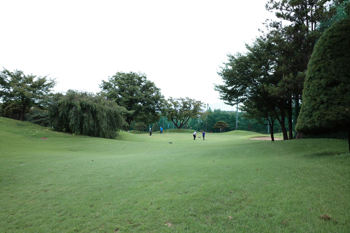 그린에서 반대로 바라본 모습. 페어웨이가 약간 언듈레이션 구성이다.