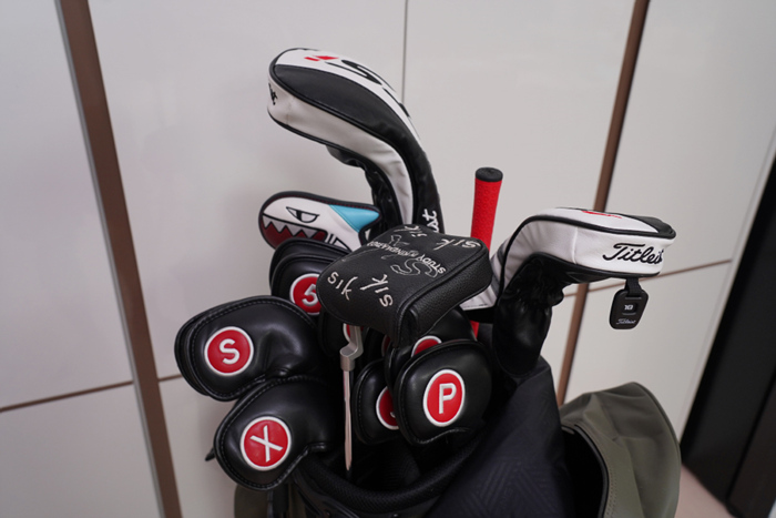 사용 중인 14개의 클럽을 모두 수납한 모습. 커버를 모두 씌워도 여유있게 수납할 수 있다.