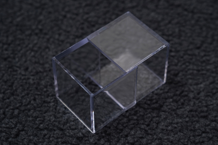 투명 아크릴로 제작되어 있고, 슬라이드 형태로 열고 닫을 수 있다. 열리는 방향이 표시되어있지 않아 열고 닫을때 여러 방향으로 돌려봐야하는 불편함은 있었다.