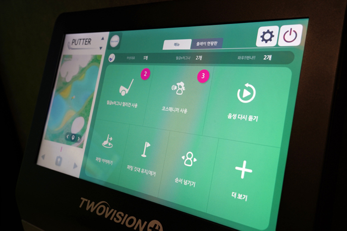 최신 컨트롤러가 적용되어 멀리건, 순서 변경 및 티높이 조절을 편리하게 진행할 수 있다.