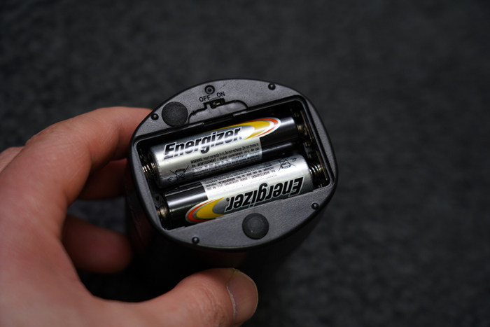 제품 회전 동작을 위한 전원은 AA 배터리 2개를 사용하며 하단에 장착된다.