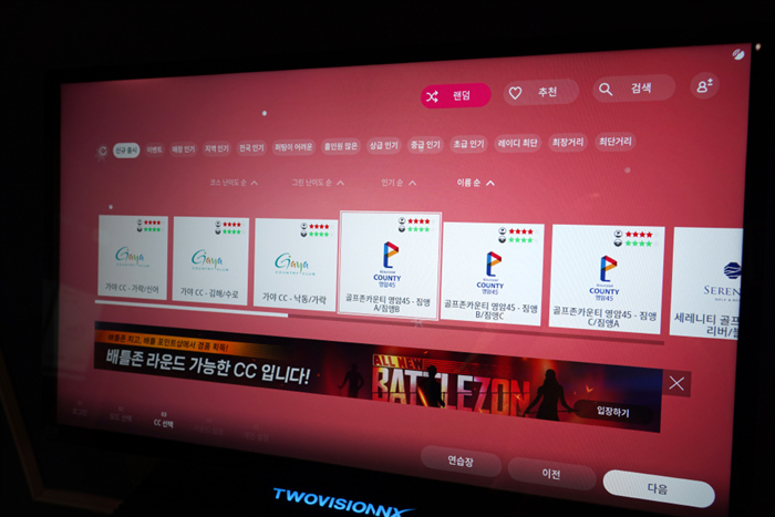투비전NX 골프존 스크린에 새롭게 추가된 코스인 골프존카운티 영암45CC를 플레이해보았다. 45개홀 총 5개 코스로 구성되어있는 곳인데, 일부 코스만 플레이가 가능한 곳이다.