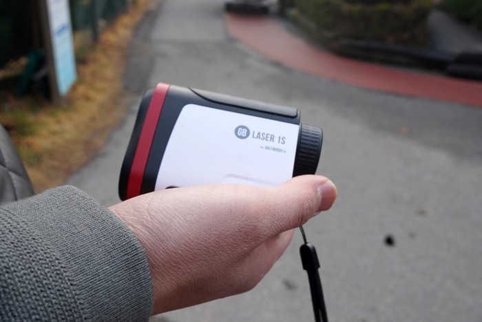골프버디 GB LASER 1S 모델은 블랙/화이트/레드의 컬러 조합으로 깔끔하며 사용해본 다양한 레이저 거리 측정기 중 가장 컴팩트한 사이즈가 장점이다.