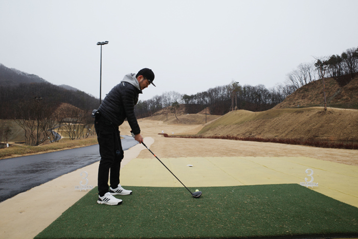 필드 라운드 전 스크린에서 시타 및 게임 플레이를 진행해보았다. 아마추어용 제품인만큼 어드레스와 스윙이 편안한 느낌에 비거리와 깔끔하고 경쾌한 금속성 타구음을 느낄 수 있다.
