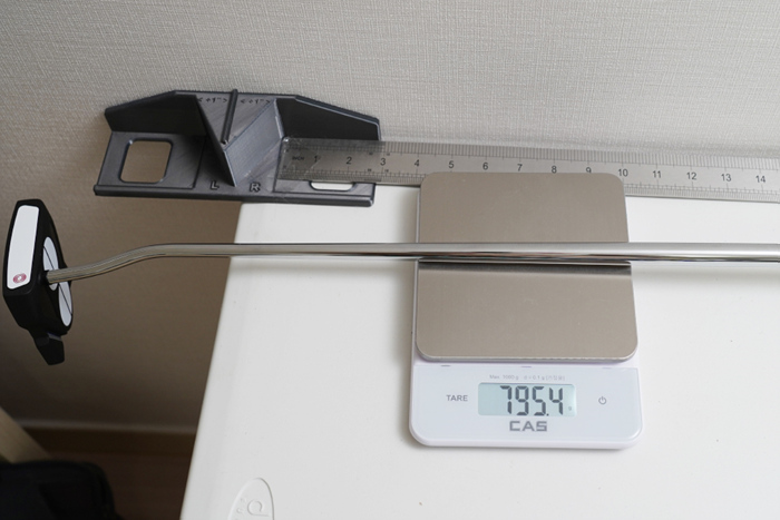 길이가 48인치다보니 퍼터 전체 무게가 일반적인 500g 대의 제품들과 달리 매우 무거운 것을 확인할 수 있다. 처음 브룸스틱 퍼터를 잡고 퍼팅을 해보면 무게와 자세로 인해 매우 어색한 느낌을 받게된다.