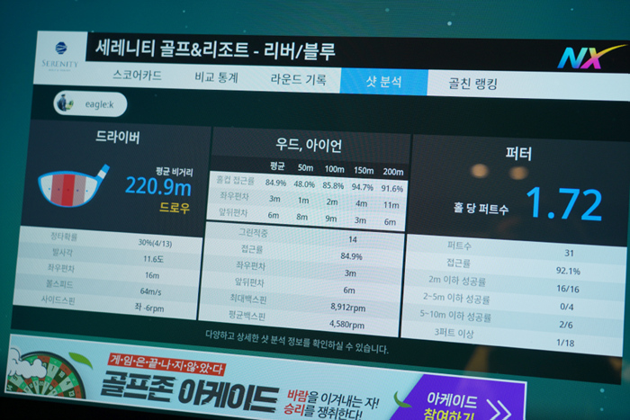 안정적인 퍼팅을 기반으로 스코어 또한 G핸디에 비해 매우 좋게 기록되었다. 계속 사용하며 적응하면 스크린 뿐만 아니라 필드 라운드에서도 좋은 결과를 만들 수 있으리라 생각된다.