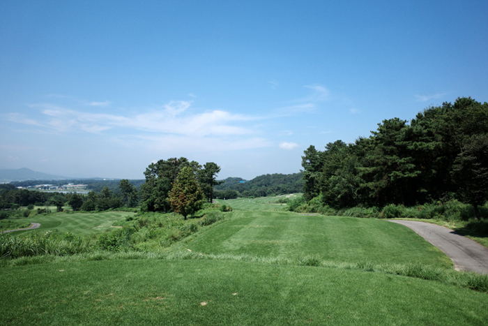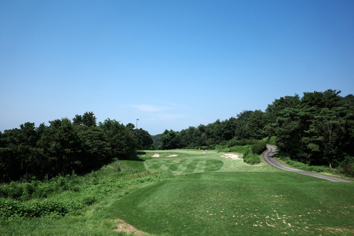 항상 라운드를 진행하면 세컨샷 이후 반대쪽을 바라보며 새로운 풍경을 즐기곤 한다. 써드샷 지점에서 바라본 모습은 선명한 초록색의 양잔디와 라인으로 멋스러운 풍경을 만들어주고 있다.