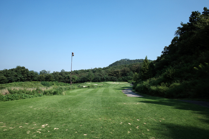 이천 실크밸리CC 밸리 코스 9번홀은 345m 파4로 무난하게 구성되어있다.