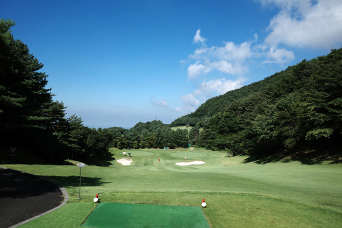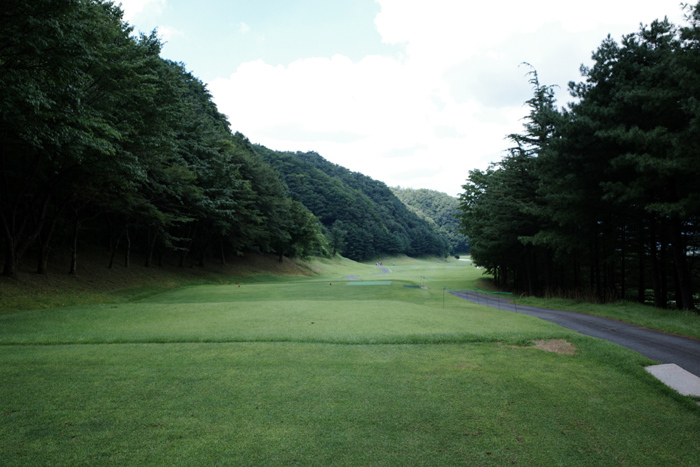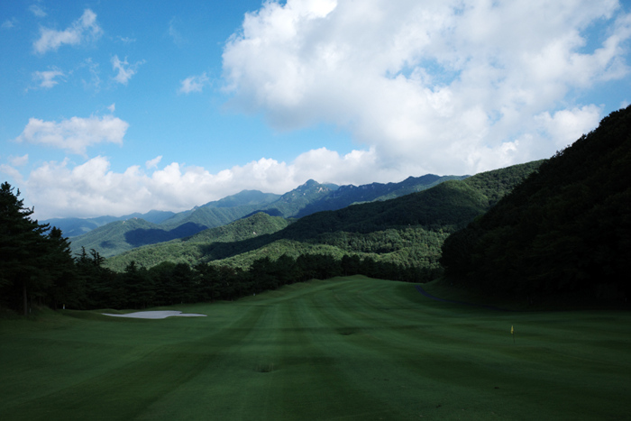 팔공CC 후반 라운드는 인 코스로 315m 파4의 1번홀을 확인할 수 있다.