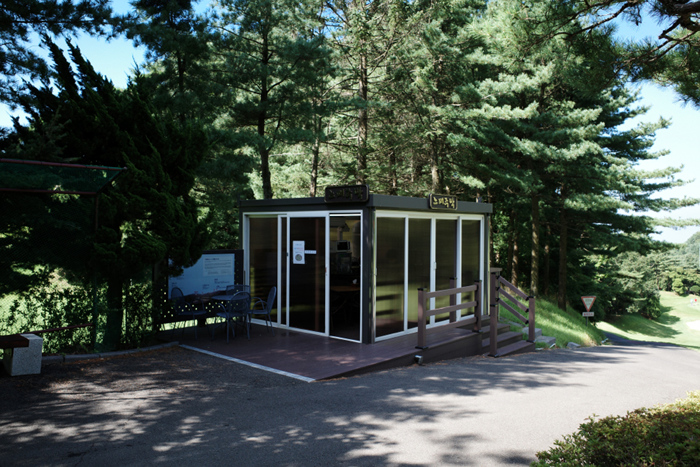 간이 그늘집이 옆에 있어 더위나 추위를 피하고 간단하게 이용할 수 있다.