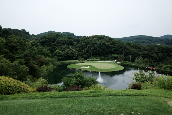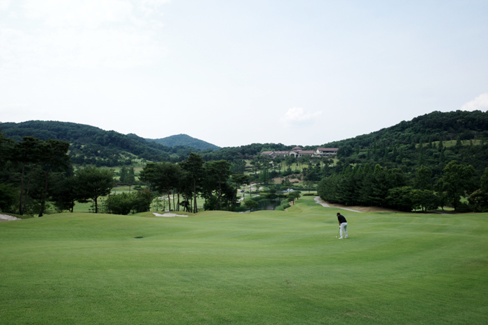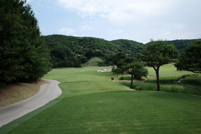 연습그린 상태가 매우 좋은편. 힐/크리크/밸리 3개의 코스로 총 27홀 규모에 한국 잔디로 구성된 골프장이다.