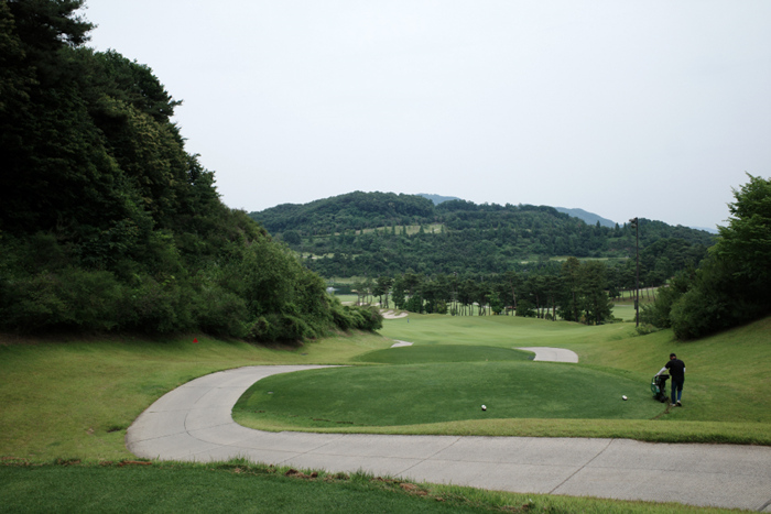 티잉그라운드쪽을 바라본 모습. 주변의 산과 어우러져 젓진 풍경을 볼 수 있다.