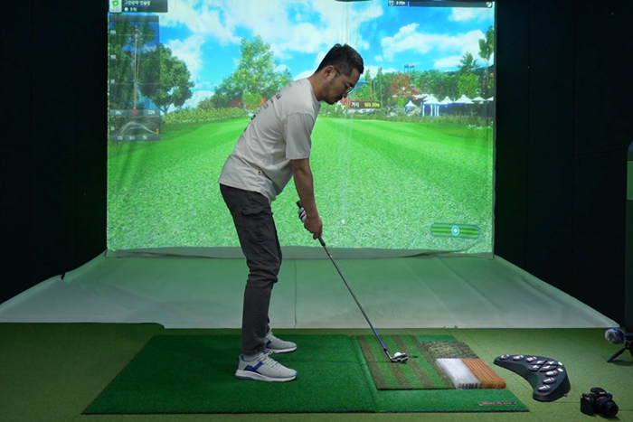 스크린 골프를 플레이하며 PXG 0311T GEN5 아이언을 사용해보았다. 헤드가 초보자용 제품들에 비해서는 약간 작은편이지만, 머슬백 모델들에 비해서는 부담스럽지 않다.