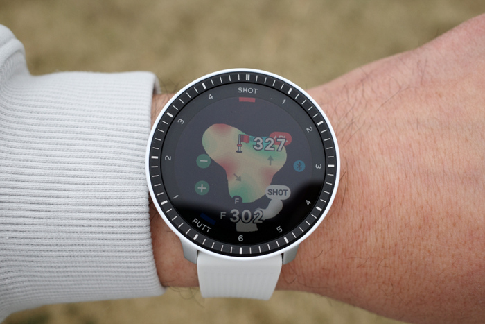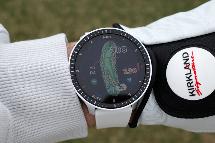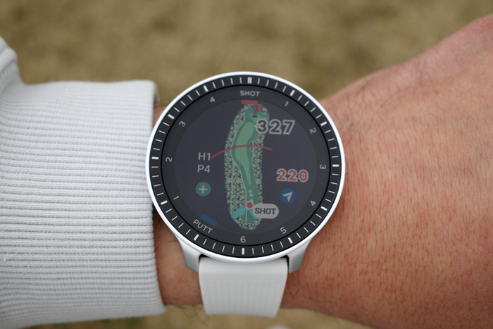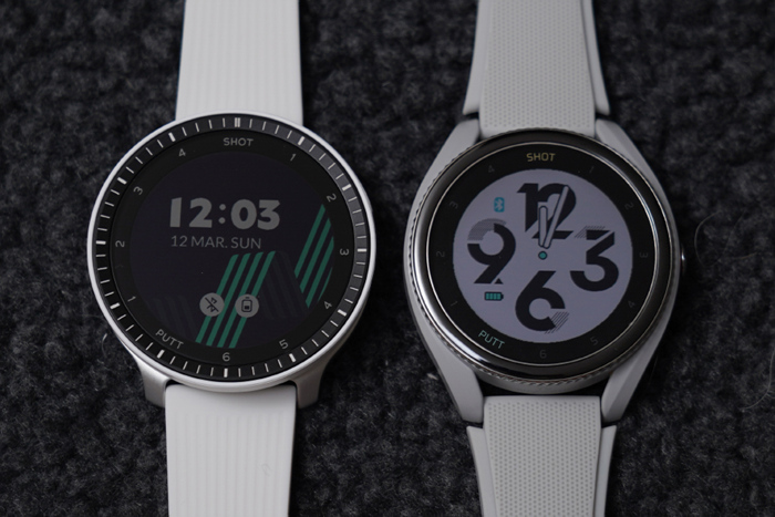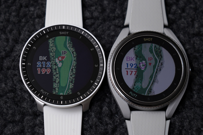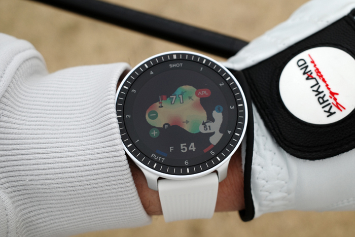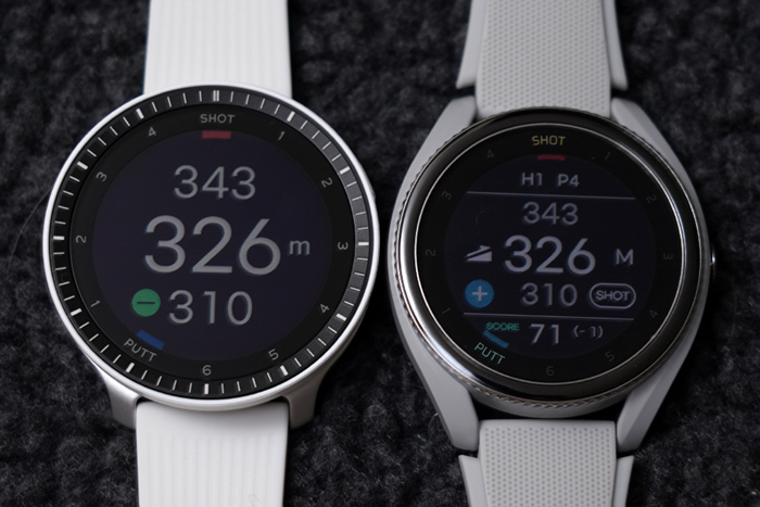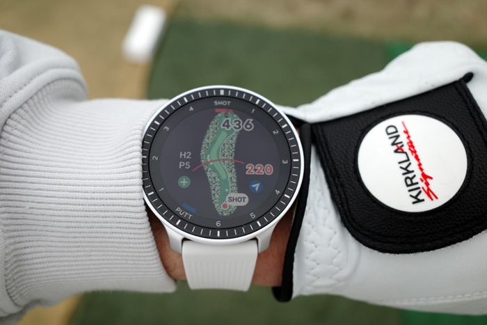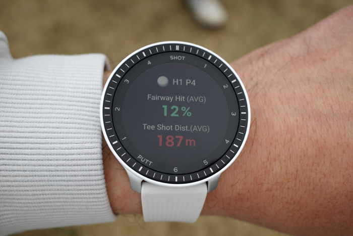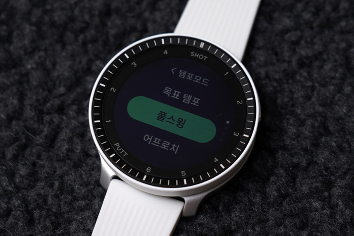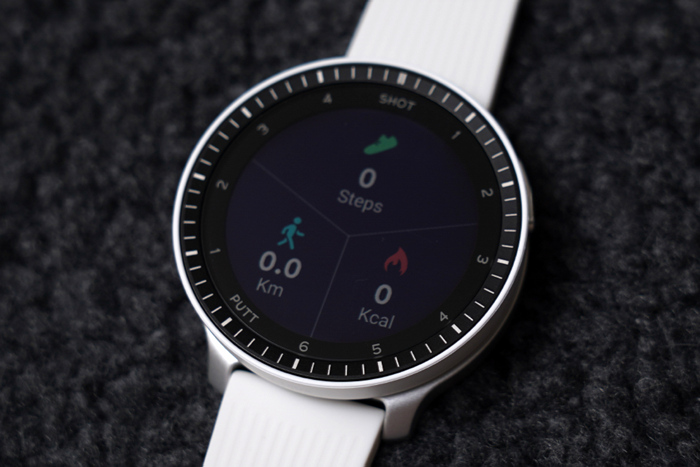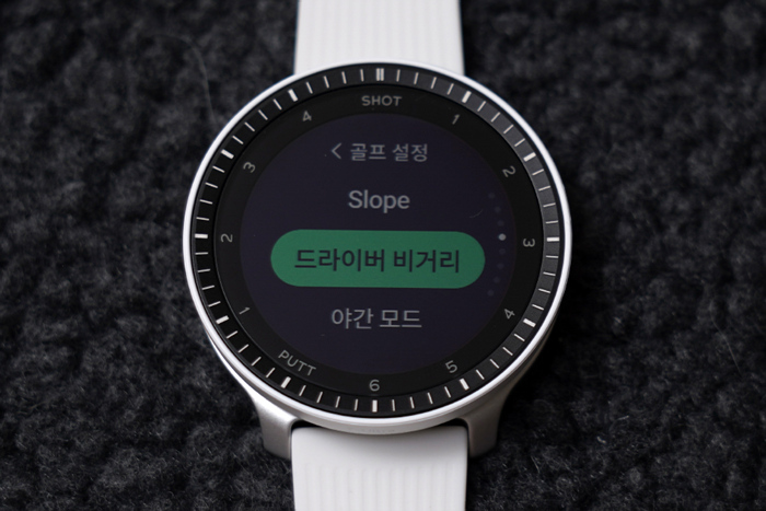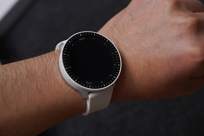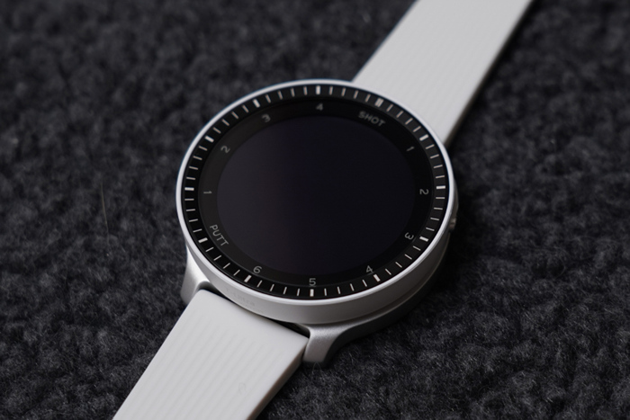 베젤 안쪽에는 1~6 SHOT과 1~4 PUTT표기로 샷 트래킹 기능과 연동한 현재 샷/퍼팅 상황을 확인할 수 있다.