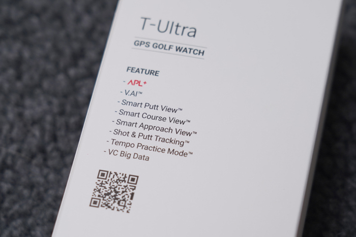 워치 스타일에 걸 맞는 깔끔하고 고급스러운 패키지의 모습. APL+, V.AI, 스마트 코스/어프로치/퍼트뷰와 자동 샷 트래킹 시스템, 템포 연습 모드가 제공된다.