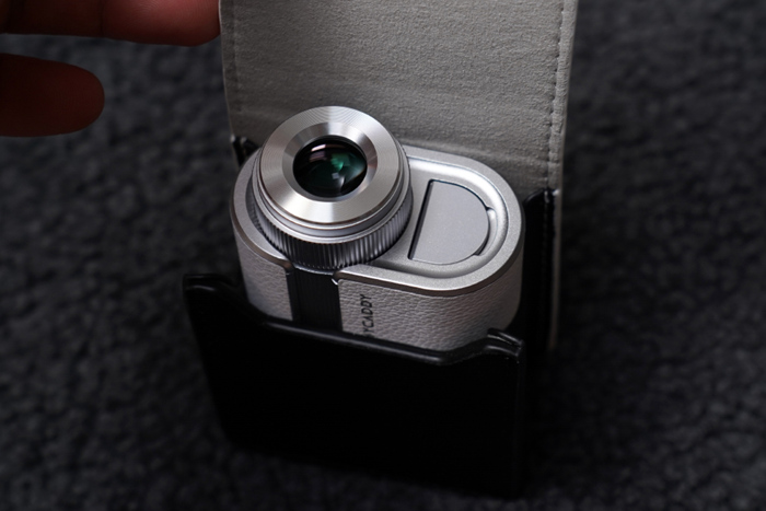 가죽 소재의 고급스러운 케이스는 자석 고정방식으로 쉽고 빠르게 제품을 수납하고 꺼낼 수 있으며, 비너와 후면 홀을 이용해 벨트나 가방 등에 고정이 가능하다.