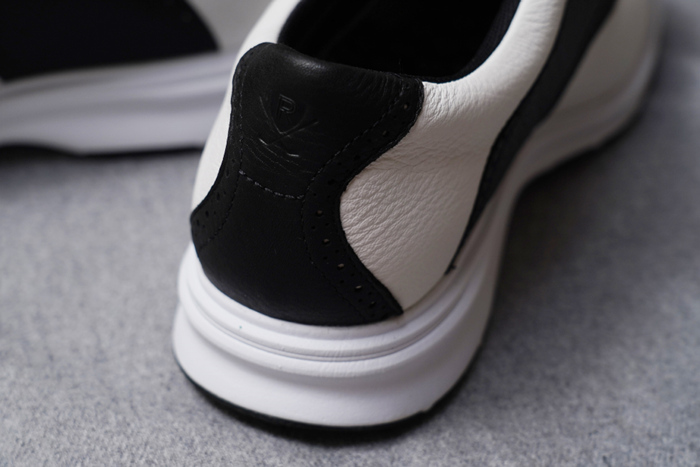 락포트 토탈모션 링크 캡토 CJ0596 모델. 화이트와 블랙이 클래식하게 잘 어울리며 운동화가 아닌 구두의 느낌을 준다.