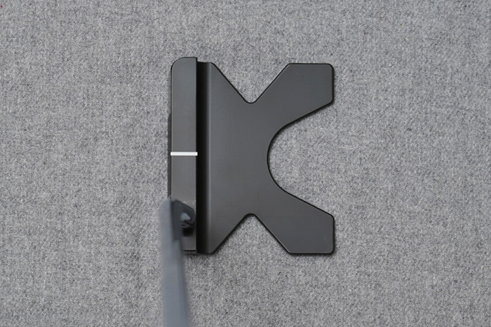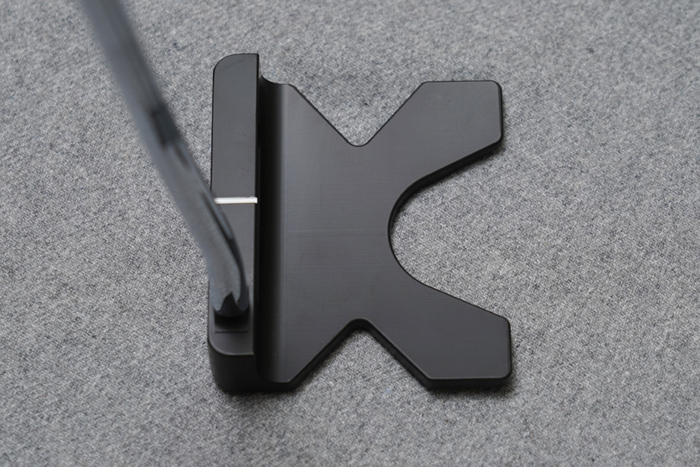 마치 블레이드와 말렛을 섞어놓은듯한 상단 디자인을 확인할 수 있다. 페이스면을 제외한 뒷부분은 매우 납작하게 바닥에 붙어있다. 어드레스 정렬을 위한 라인은 페이스면 상단부 또는 후면부 중 선택할 수 있다.