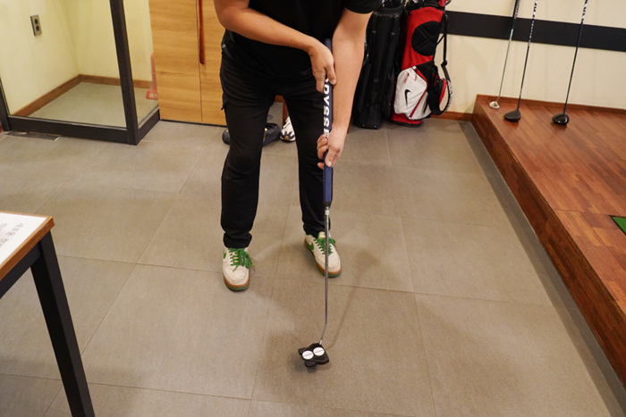 일반적인 퍼터에 비해 서있는 어드레스로 공과의 거리는 더욱 멀게 느껴진다.