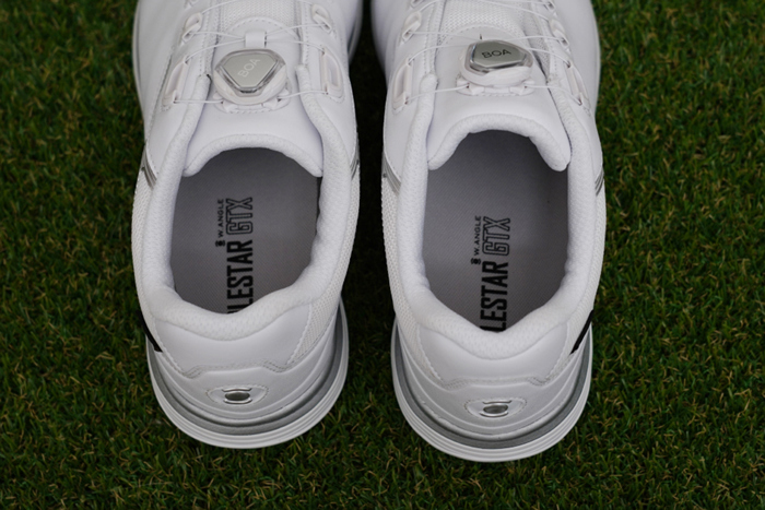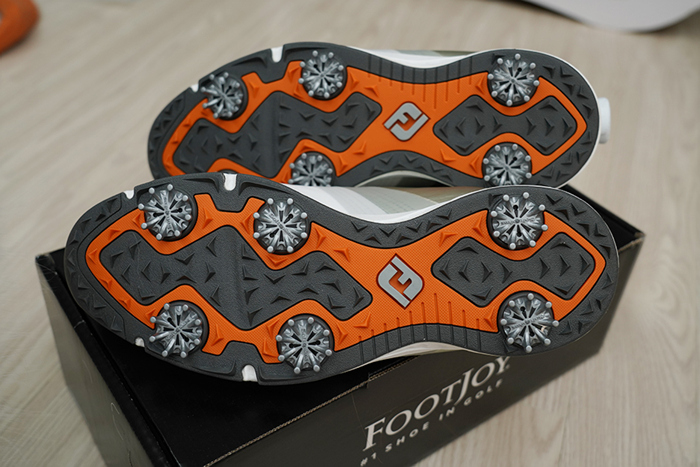 편안한 쿠션감의 파일론 미드솔 깔창에 부드러운 스파이크가 더해져 푹신푹신한 느낌이 참 좋다. 잔디 위에서 뿐만 아니라 드라이빙 레인지 연습장의 바닥에서도 안정적으로 바닥을 접지해주어 스윙이 편안하다.