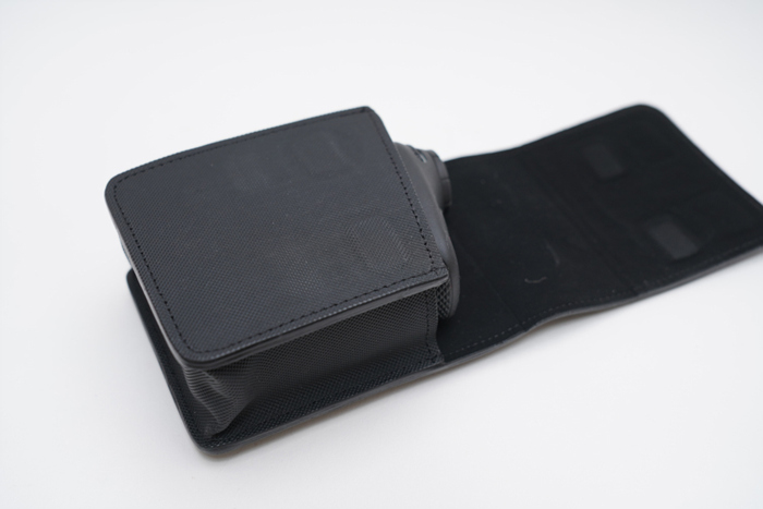 편리하게 보관 및 휴대할 수 있는 골프화 파우치가 기본 제공되며, 양 측면은 모양을 작아주어 넣고 빼기에 매우 편리하다.