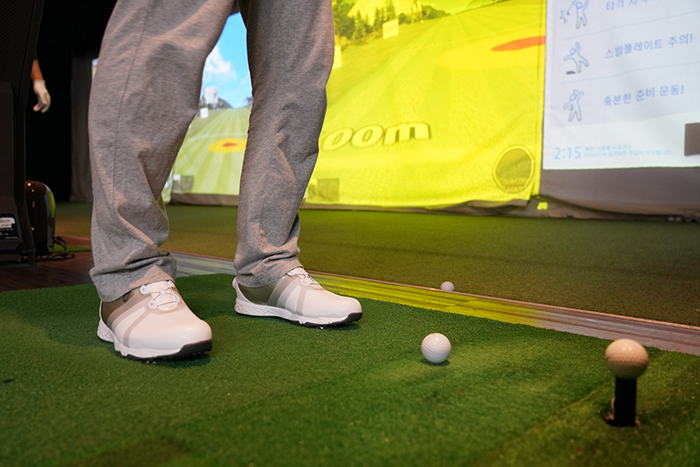 드라이빙 레인지(인도어) 연습장과 필드 라운드를 진행하며 와이드앵글 폴스타 스파이크 골프화를 착용해보았다.