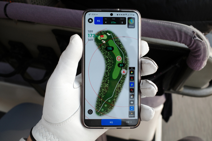 맵 데이터와 GPS 정보를 활용한 골프 라운딩을 APL 골프 앱을 이용해 사용할 수 있다.