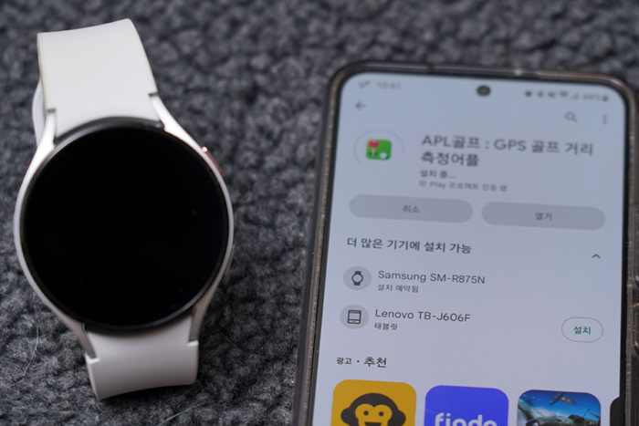 갤럭시 워치4와 연동하면 워치를 통해 남은 거리를 확인할 수 있다. 보이스캐디의 실시간 핀위치 기능인 APL이 적용된 거리로 코스 공략에 매우 유용하다.