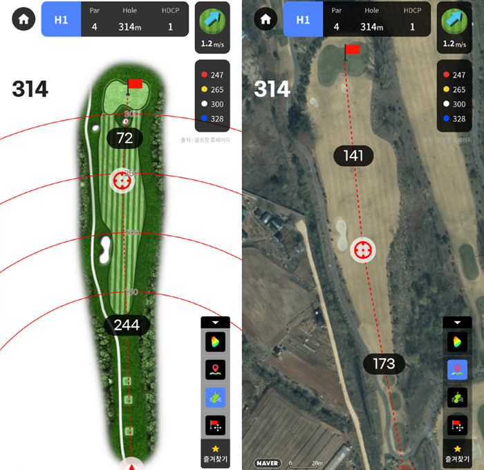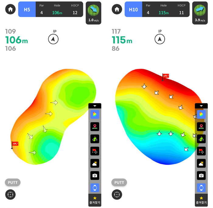 APL 실시간 핀위치가 반영되어있어 안정적으로 그린을 공략할 수 있으며, 잔디를 뜯어 날려보지 않아도 풍속과 방향이 표시되기에 더욱 유용하게 활용할 수 있었다.