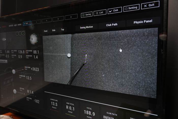 QED 인터페이스의 모습. 드라이빙 레인지와 스크린 골프 플레이와 같은 모드까지 다양한 모드가 있으며, 클럽을 선택해 데이터를 기록할 수 있다.