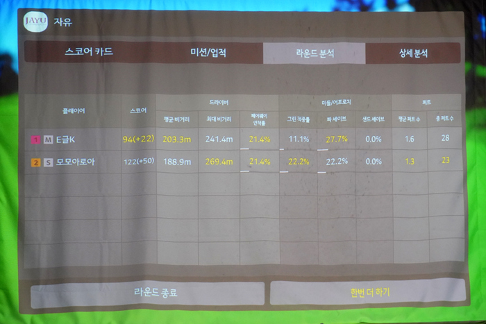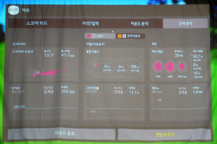 웨지부터 아이언, 드라이버까지 다양한 클럽의 연습을 진행했다. 실제 필드라운드에서 나타나는 데이터와 거의 흡사해 실전처럼 연습하고 클럽별 거리 등을 확인하는데 큰 도움이 된다.