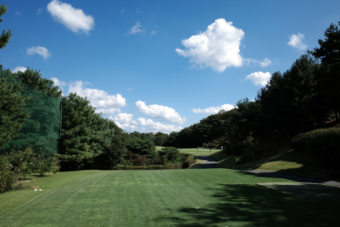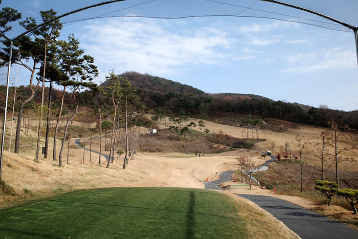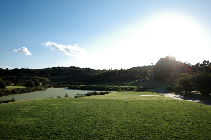 남여주CC 누리 코스 1번홀은 파4 326m. 페어웨이가 다소 좁은 것 이외에는 큰 어려움은 없다.