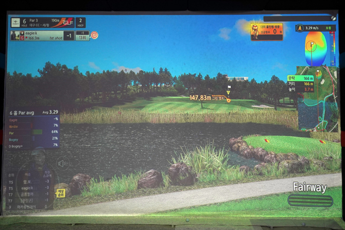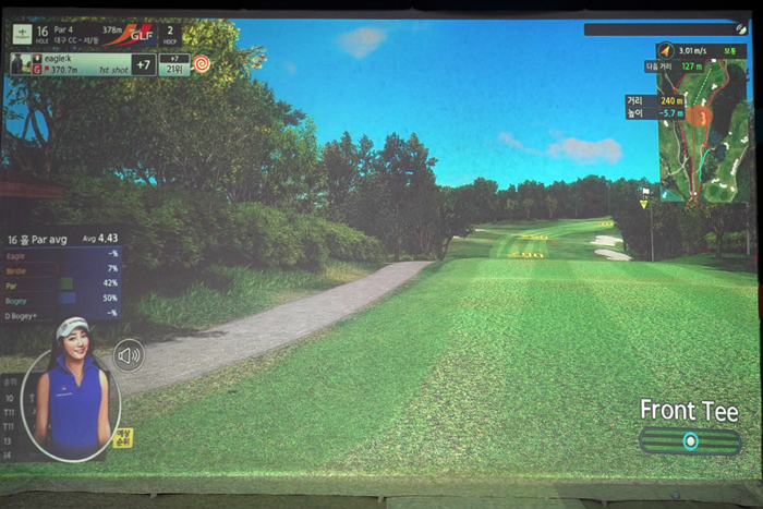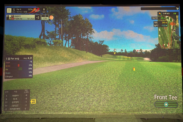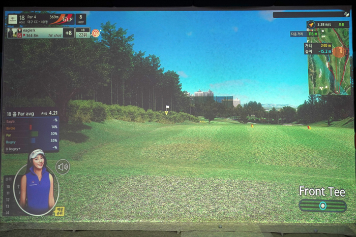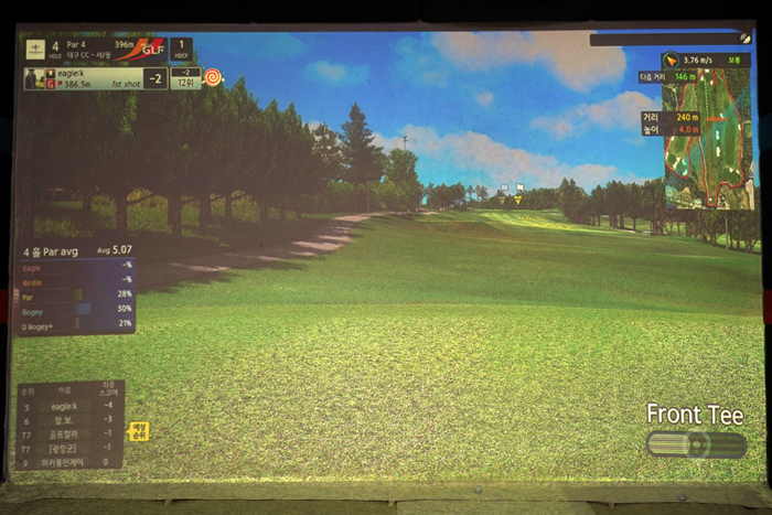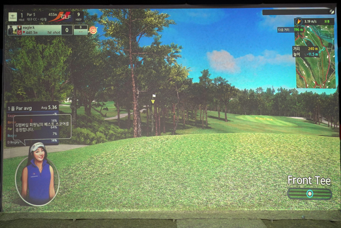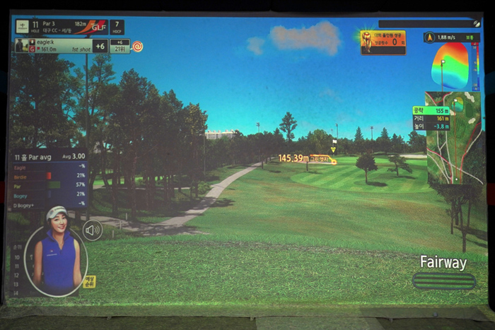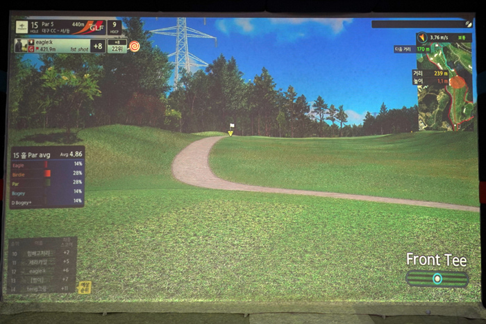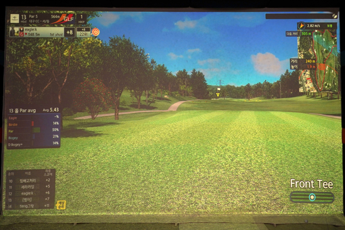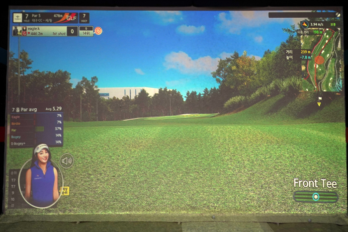 연습 모드의 인터페이스. 다양한 데이터가 표기되고 있으며, 스크린 골프를 플레이해본 골퍼라면 쉽게 적응할 수 있다.