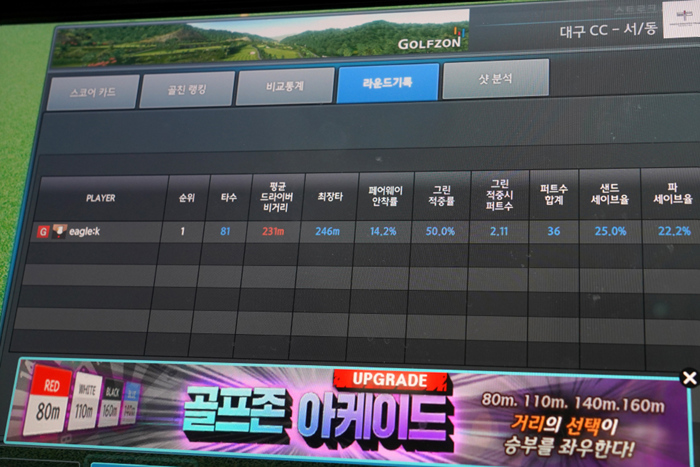 역시나 관용성의 핑 답게 안정적인 티샷을 기반으로 좋은 스코어를 만들 수 있었으며, 페어웨이 안착율 또한 매우 높게 나타났다.