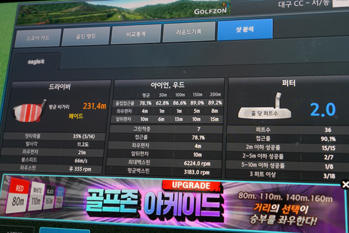 0.15초만에 측정되는 빠른 속도의 ZST+ 기술이 탑재되어있는 덕분에 딜레이 없이 거리를 측정하며 플레이를 진행할 수 있었으며, 고저차 보정 기능인 슬로프 또한 거리 공략에 큰 도움이 되었다.