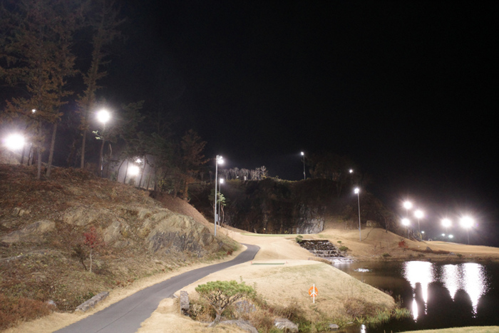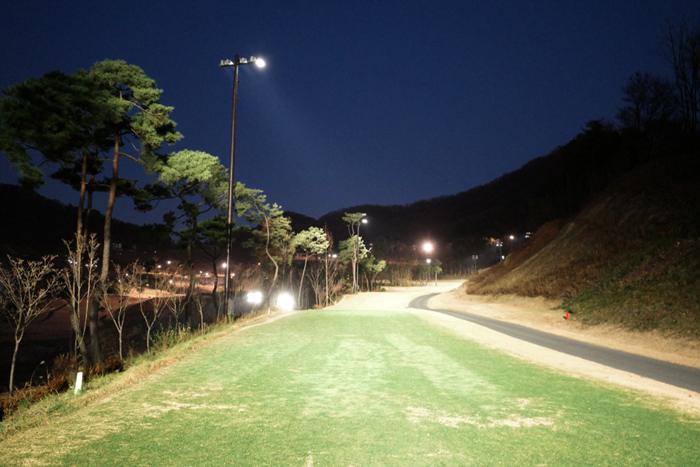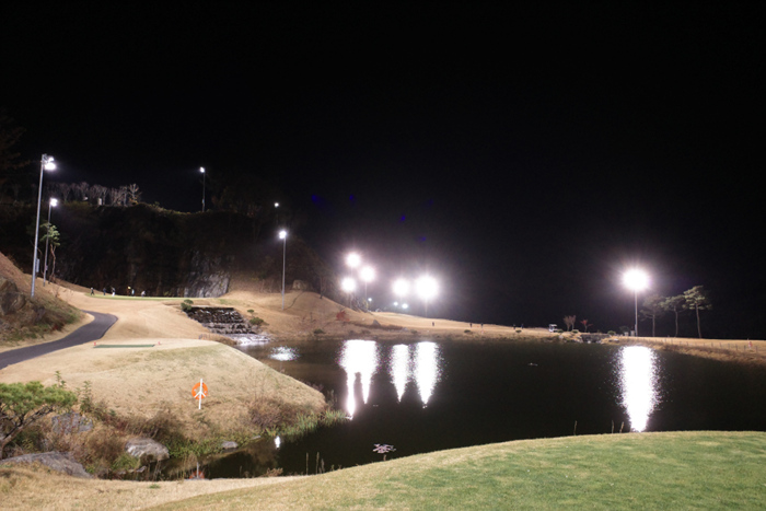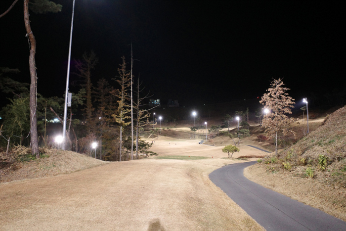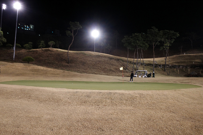 11월 2부티의 막바지에 이르자 해가 지고 조명이 들어온다. 6번홀은 407m 파5.