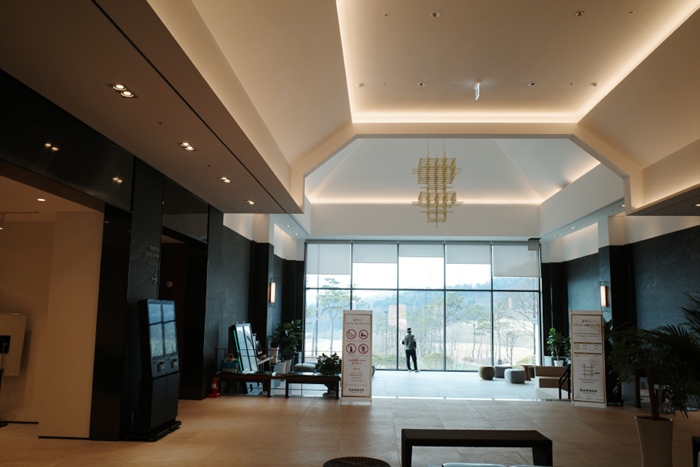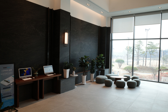 클럽하우스는 멋스럽고 깔끔하다. 주차장이 클럽하우스보다 높게 구성되어있는 독특한 곳. 에스컬레이터를 타고 로비로 내려와야한다.