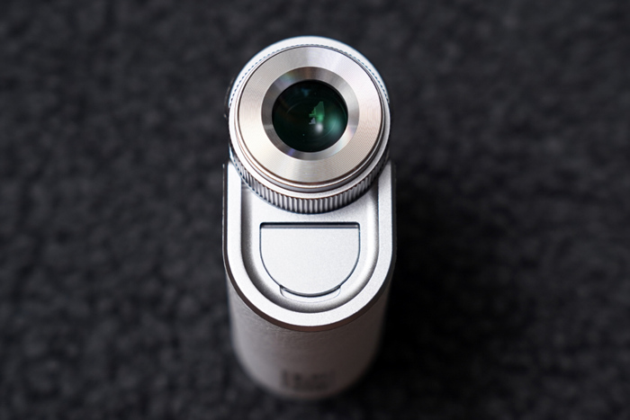 시도 조절을 지원하는 접안렌즈와 하단의 충전 포트를 확인할 수 있다.